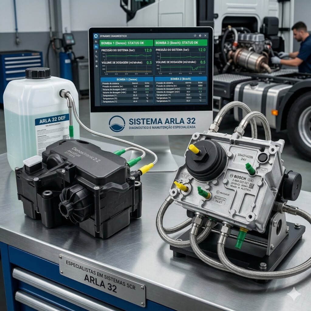 Manutenção, limpeza e reparo completo do sistema ARLA (SCR) de veículos pesados e leves.